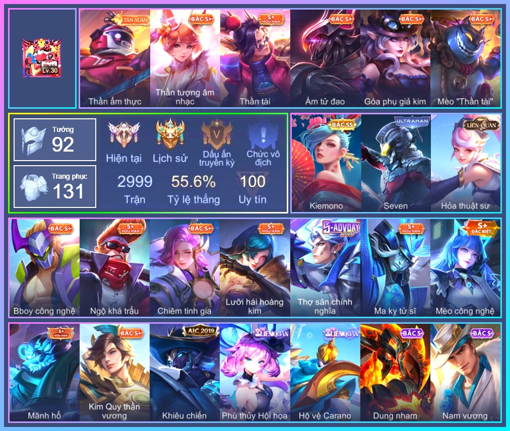 Valhein Hoàng tử Quạ, Valhein Số 7 Thần Sầu, Valhein Thần tài, Valhein S-Quang Vinh, Triệu Vân Quý Công Tử, Triệu Vân Thần Tài, Krixi Phó văn nghệ, Krixi Thuỷ Thủ, Gildur phượt thủ, Gildur Đại gia học viện, TelAnnas Cảnh Vệ Rừng, Telannas Thánh nữ mật hội, Telannas Dạ hội, Mina Tiểu thư đoạt hồn, Mina Đào tạo siêu sao, Thane Kẻ Hủy Diệt, Toro Bạch mao Ngưu, Veera Goá Phụ, Veera Thiên nga đen, Natalya Quý Cô Thủy Tề, Taara Đại tù trưởng, Taara Hỏa Ngọc Nữ Đế, Taara Hồng môn đường chủ, Kahlii Siêu đầu bếp, Thorne Cận vệ hoàng gia, Thorne Thám tử trung học, Zephys Phi thương, Zephys Tư lệnh viễn chinh, Alice Xứ sở thần tiên, Alice The Butterfly Mansion Girl, Preyta Không Tặc, Preyta Phi cơ F1, Điêu Thuyền Mèo công nghệ, Dirak Cảnh Vệ Bầu Trời, Dirak Quý tộc, Dirak Ông bầu Showbiz, Arduin, Hayate Bạch ảnh, Hayate Bạch lang, Sinestrea Giấc mơ trưa, Violet Nữ đặc cảnh, Violet Phó học tập, Violet Huy Chương Vàng, Ilumia Nữ Chúa Tuyết, Ilumia Thiên nữ áo dài, Ilumia Diva nổi loạn, Allain Lân sư Vũ thần, Airi Lễ hội mùa xuân, Laville Tay súng vô địch, Sephera Chiêm tinh gia, Sephera Phi vụ thế kỷ, Sephera Thủy Liên Hoa, Kaine Thợ Săn Chính Nghĩa, Capheny Thần tượng âm nhạc, Capheny S-Quang Vinh, Slimz Thỏ Thợ Mỏ, Lorion Chiến giáp hắc ám, Lorion Quân vương bóng tối, Astrid Hoa anh đào, Maloch Ác Ma Địa Ngục, Maloch Ác nhân vô tuyến, Volkath Tư lệnh viễn chinh, Volkath Quang vinh, Azzenka Ghẹo hay kẹo, Skud Sơn Tặc, Mganga Doombot Hủy Diệt, Florentino Vũ kiếm sư, Florentino Kiếm sĩ Olympic, Florentino S-Quang Vinh, Veres Đạo tặc, Veres Chị đại học đường, Moren Anh thợ điện, Marja Linh Xà Tư Tế, Ormarr CĐV Cuồng nhiệt, Lindis Đồng phục Shihakusho, Zuka Giáo Sư Sừng Sỏ, Zuka Phát Tài, Zuka Gấu Nhồi Bông, Zuka Đầu bếp hoàng cung, Zuka Rapper Big Panda, Zuka Xích Hùng Chiến Giáp, KilGroth Cảnh Vệ Biển, Paine khúc nhạc tử vong, Omen Sĩ Quan Viễn Chinh, Omen Thuyền trưởng hải tặc, Rouie Sứ giả vũ trụ, Rouie Quang Vinh, Butterfly Thủy thủ, Butterfly Teen Nữ Công Nghệ, Lauriel Đọa Lạc Thiên Sứ, Ata Quang vinh, Ata Mèo đi mưa, Cresht Thợ sửa cáp, Caesar Bão tố, Superman Chúa Tể Công Lý, Arthur Hoàng kim cốt, Arthur Siêu sao Cricket, Richter Quang vinh 2.0, Grakk Thuyền Trưởng Râu Đỏ, Grakk Khô Lâu Đại Tướng, Grakk Màu cờ sắc áo, Keera Học viên Carano, Keera Thuỷ thủ, Roxie Thám tử tập sự, Roxie Lễ hội hoa, Elsu Mafia, Tulen Phù Thủy Kiến Tạo, Zill Thần mộng mị, Amily Đặc cảnh NYPD, Amily Hội ám hoàng, Amily Thám tử trung học, Liliana Hồ Quý Phi, Errol Stream đến bao giờ, Raz Đại tù trưởng, Max Tiểu King Kong, Qi Thiếu nữ pháo hoa, Ngộ Không Đạo tặc, Ngộ Không Cổ thần Ai Cập, Dextra Chiến binh quyến rũ, Dextra Quý cô Tuổi Dần, Xeniel Kim sí điểu, Annette Xứ sở thần tiên, Yena Nữ hoàng thể thao, Yena Nữ cướp biển, Zip Cá siêu quậy, TeeMee Xiếc Cung Đình, Teemee Thịt xiên nướng, Ignis Bắc băng vương, Ignis Vì sao con khóc, Enzo Phẩm chất quý tộc, Enzo Chiến binh trăng khuyết, Enzo Thần thoại Hy Lạp, Enzo Leo núi, Elandorr Soái tặc, Bonnie S Quang Vinh, Quillen Trưởng ngoại khoa, Krizzix Crursed Corps